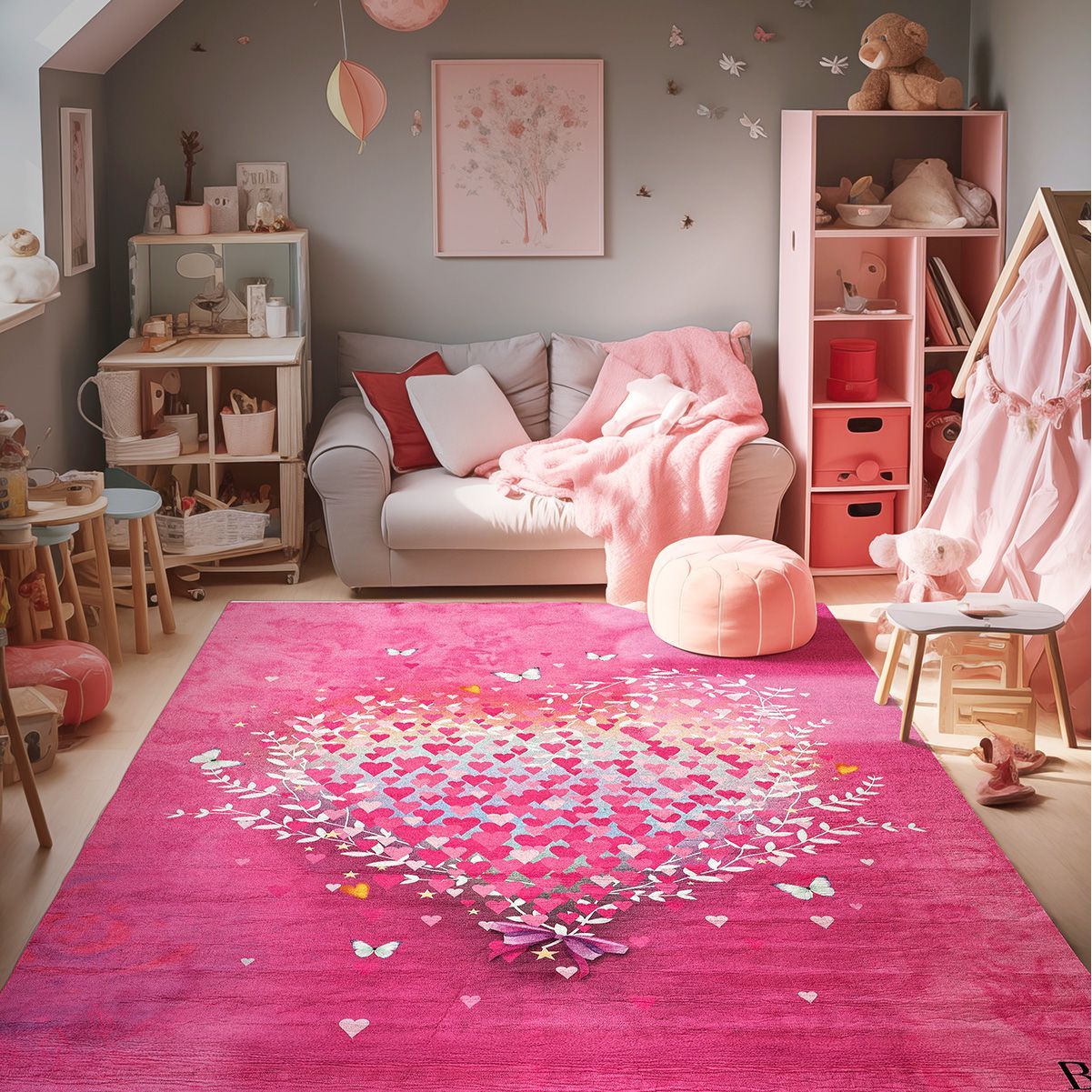 Παιδικό Χαλί με Καρδιές – Ιδανικό για Ρομαντικά Κορίτσια