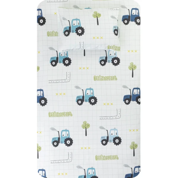 Σετ σεντόνι μονό με μαξιλαροθήκη, από ύφασμα μερσεριζέ, 144 κλωστών, 100% βαμβακερό, εμπριμέ, σχέδιο τρακτέρ. Συνδυάστε με κατωσέντονα Solid ή Mix and Match.