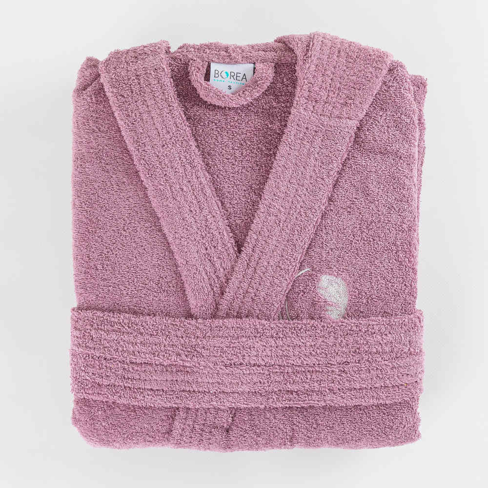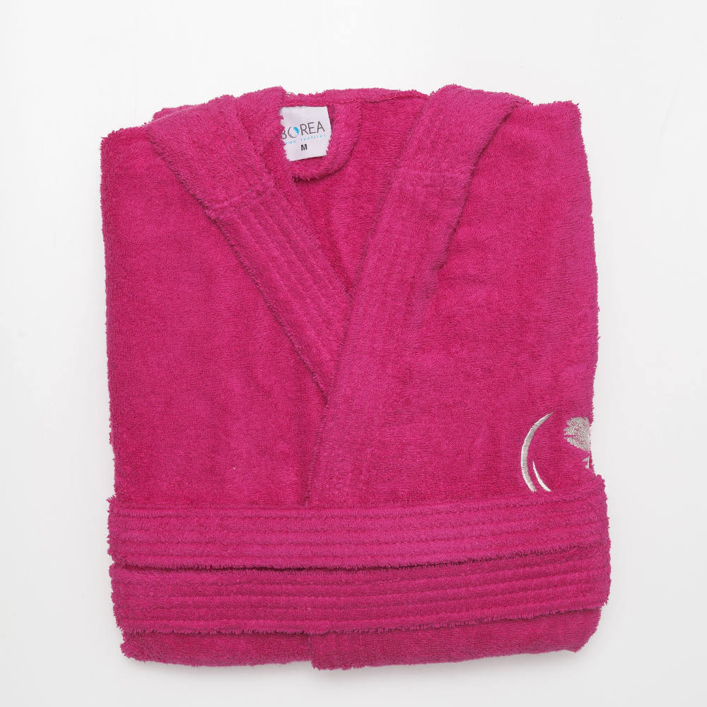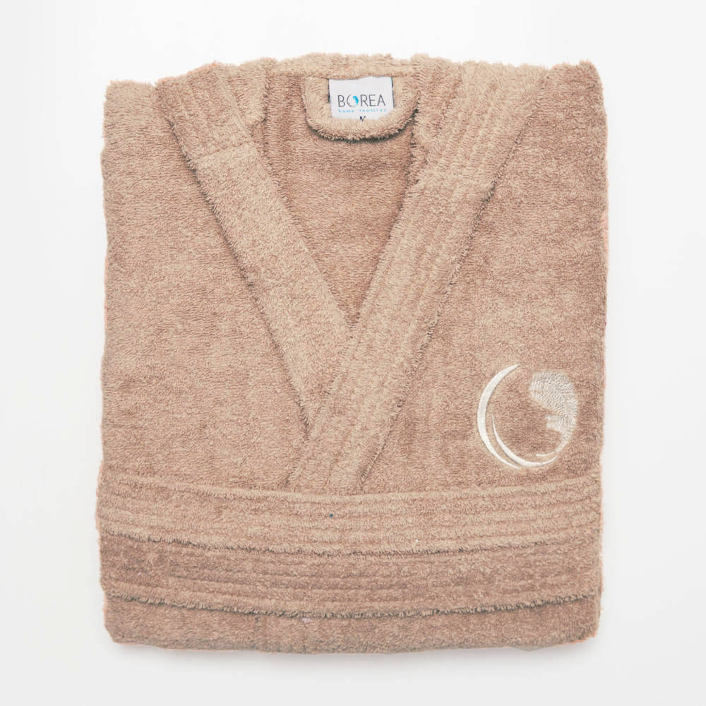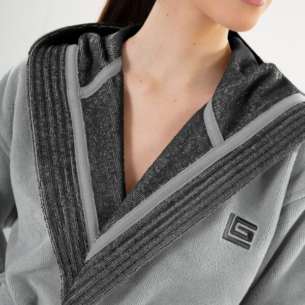 Μπουρνούζι ενηλίκων με κουκούλα και κέντημα, από ύφασμα φροτέ πενιέ 420 γρ., 100% βαμβακερό, μονόχρωμο, χρώμα γκρι.