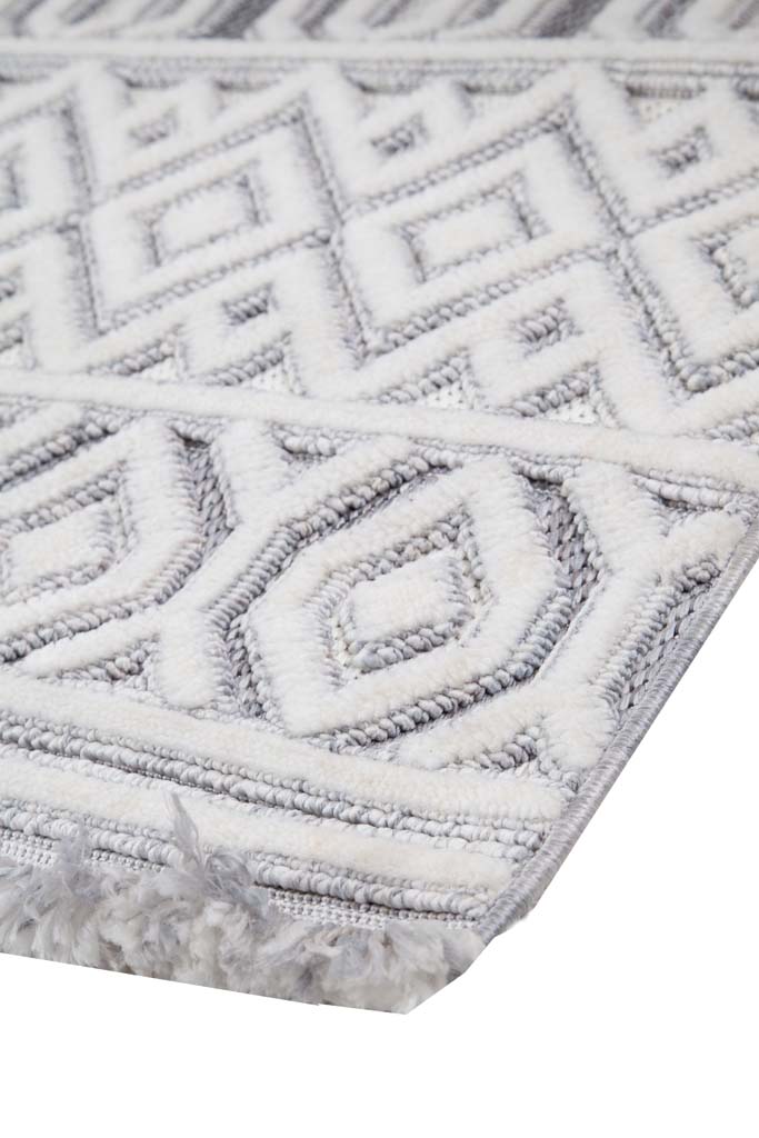 Μοντέρνα ανάγλυφα χαλιά τριών επιπέδων με ιδιαίτερη γυαλάδα στην επιφάνεια και μοναδικό κρόσσι. Σε λευκούς, ασημί και γκρι χρωματισμούς ανανεώνει το χώρο σας και αποτελεί ξεχωριστή πρόταση τόσο για το σαλόνι καθώς για την κρεβατοκάμαρά σας. Πρακτικό και εύκολο στο καθάρισμα.