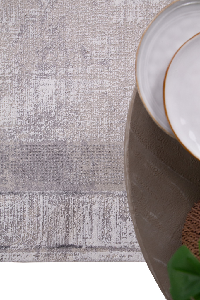 Μοναδικό χαλί μηχανής με χαρακτηριστικά σχέδια χειροποίητων χαλιών. Το ιδιαίτερο τελείωμα του χωρίς ρέλι, καθώς και η κατασκευή από ποιοτικά νήματα, συμβάλλουν στην άριστη ποιότητα του χαλιού. Σε αποχρώσεις γκρι, μπεζ και μπλε σε μοντέρνα και κλασσικά σχέδια είναι η ιδανική πρόταση για τη διακόσμηση του χώρου σας.