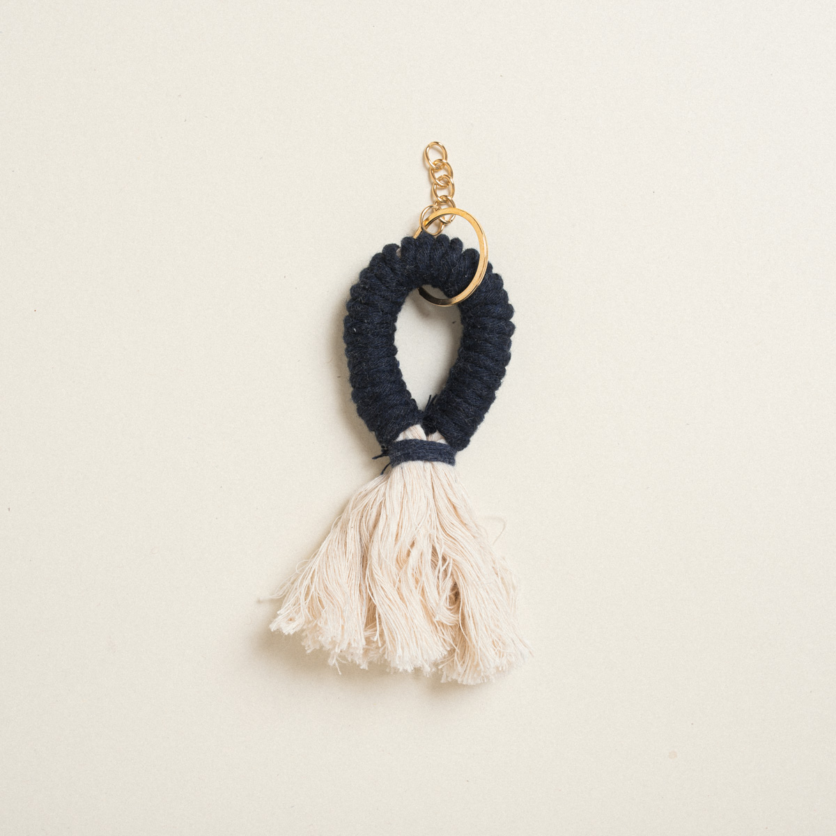 Χειροποίητο μακραμέ μπρελόκ 11 x 4 cm, ιδανικό για μπομπονιέρα. Με όμορφο σχέδιο και φυσική αίσθηση, προσφέρει μια ξεχωριστή και