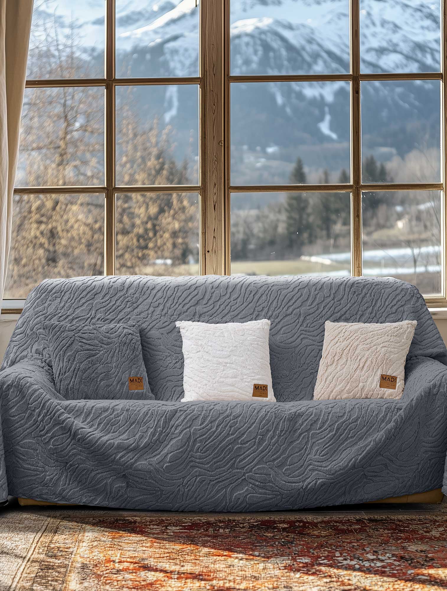 Ριχτάρι πολύθρονας: 180 x 180 εκ. Η ORION COLLECTION της MADI με ανάγλυφα ριχτάρια και διακοσμητικά μαξιλάρια χαρίζει στο σαλόνι