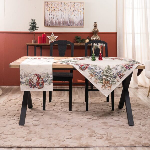 Καρέ από ύφασμα λονέτα 50% βαμβακερό-50% πολυέστερ, με εμπριμέ χριστουγεννιάτικο σχέδιο.