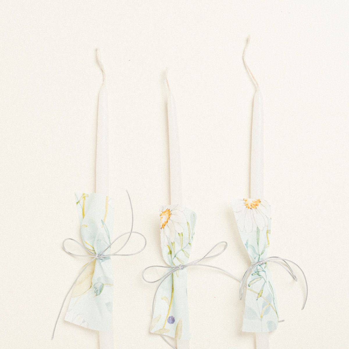 Σετ από 3 διακοσμημένα κεράκια κολυμβήθρας, ιδανικά για βάπτιση. Προσεγμένη χειροποίητη διακόσμηση με λεπτομέρειες που δίνουν κομψότητα και μοναδικότητα σε