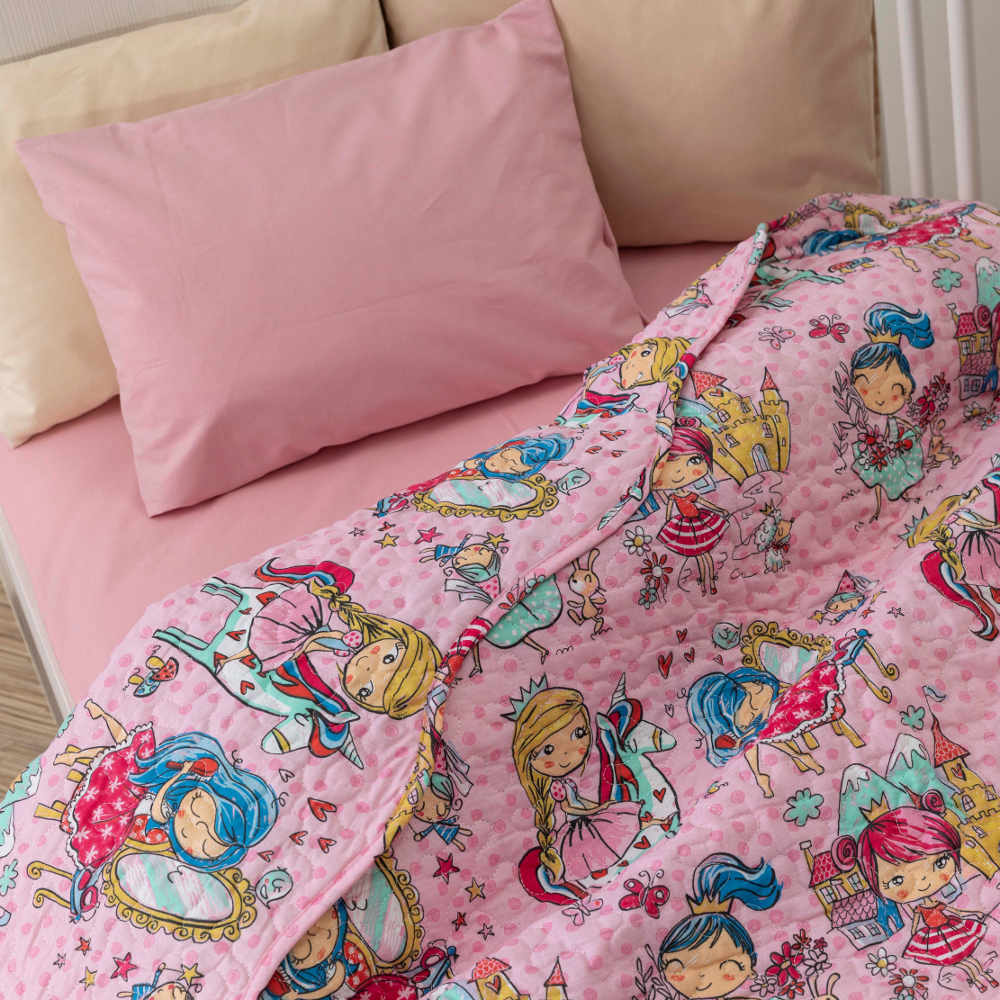 Κουβερλί κούνιας από ύφασμα 100% βαμβακερό, εμπριμέ, ροζ, με γραμμικό πολύγαζο σχέδιο.