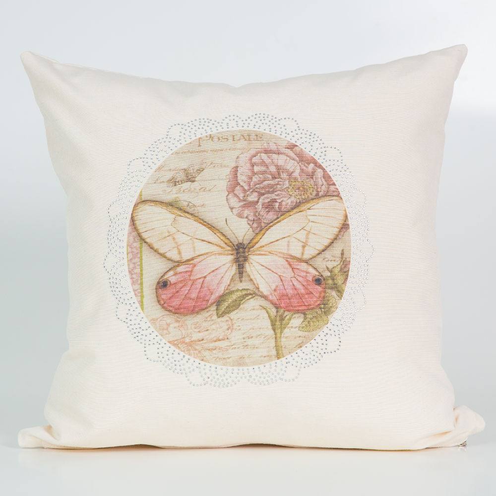 Μαξιλάρι φιγούρας από ύφασμα λονέτα, 100% βαμβακερό, με φερμουάρ και ψηφιακή εκτύπωση και strass.(Χωρίς γέμισμα).