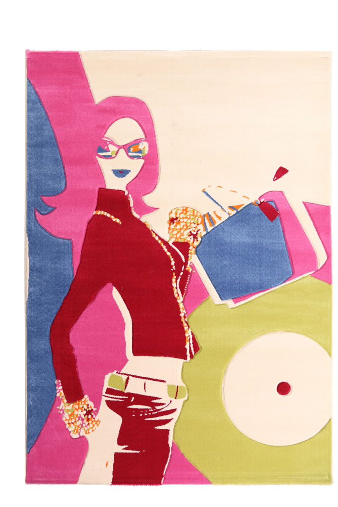 Μοντέρνο ανάγλυφο μηχανοποίητο χαλί με pop art παραστάσεις. Ιδανικό και εφηβικά ή παιδικά δωμάτια.