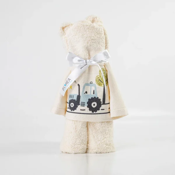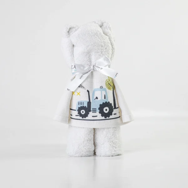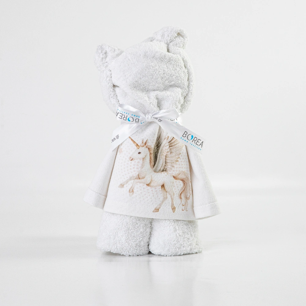Πετσέτα προσώπου, από ύφασμα φροτέ πενιέ, 100% βαμβακερό, μονόχρωμο, με ψηφιακή εκτύπωση, σχέδιο μονόκερος, σε συσκευασία/σχήμα αρκουδάκι.Διατίθεται σε 2 χρώματα.