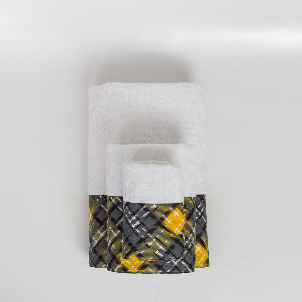 Σετ πετσέτες 2 τεμαχίων, προσώπου και χειρός, από ύφασμα φροτέ, πενιέ, 100% βαμβακερό, με διακοσμητική φάσα ύφασμα.Διατίθεται σε 3 χρώματα.