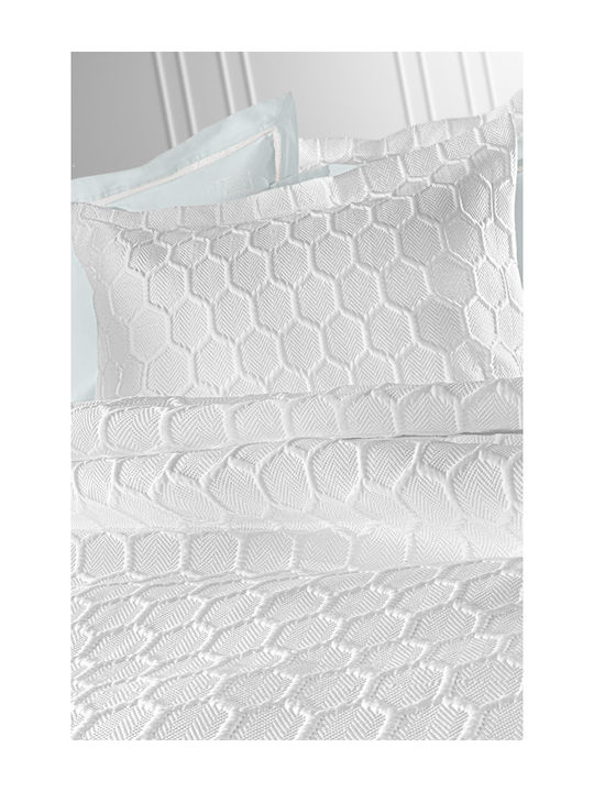 Σετ κουβερλί jacquard 3 τεμαχίων αποτελούμενο από ένα κουβερλί και δύο διακοσμητικές μαξιλαροθήκες διάστασης 50×70εκ. Το σετ είναι κατασκευασμένο από 100% microsatin με ανάγλυφο σχέδιο, ιδανικό για τους ανοιξιάτικους και θερινούς μήνες, με την υπογραφή της Guy Laroche Paris.